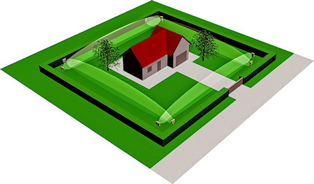Perimetrické zabezpečení, resp. systém detekující narušení prostoru mezi dvěma mikrovlnnými bránami(bariérami), založený na mikrovlnném rádiovém spojení(nikoliv optickém - IR). Lze instalovat samostatně i