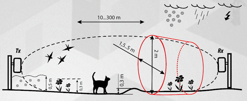 vytvořit sériově zapojený uzavřený střežený okruh. Výhodou je široká škála typů zařízení dle vzdálenosti mezi bariérami(50-300m), široký rozsah nastavení citlivosti, resistence proti falešným