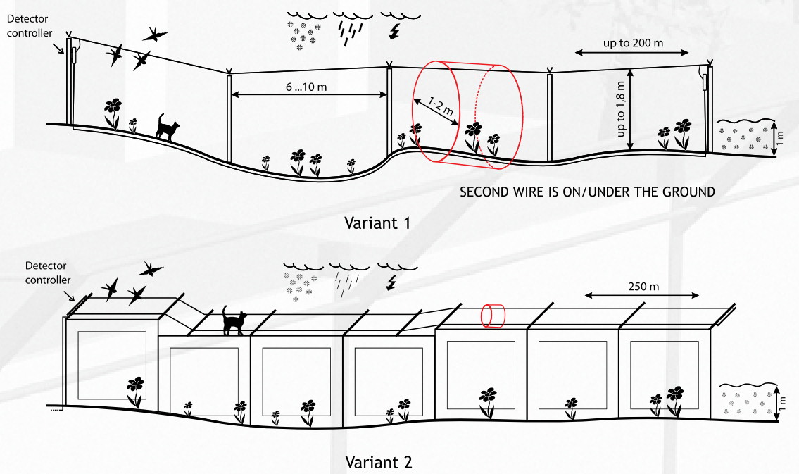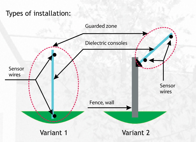 Systém detekce založený na narušení el.-mag. pole mezi dvěma vodiči. Lze instalovat mnoha způsoby, nejčastější je použití pro detekci překonání výškové bariéry jako jsou zdi, ploty, brány(obr.1), ale